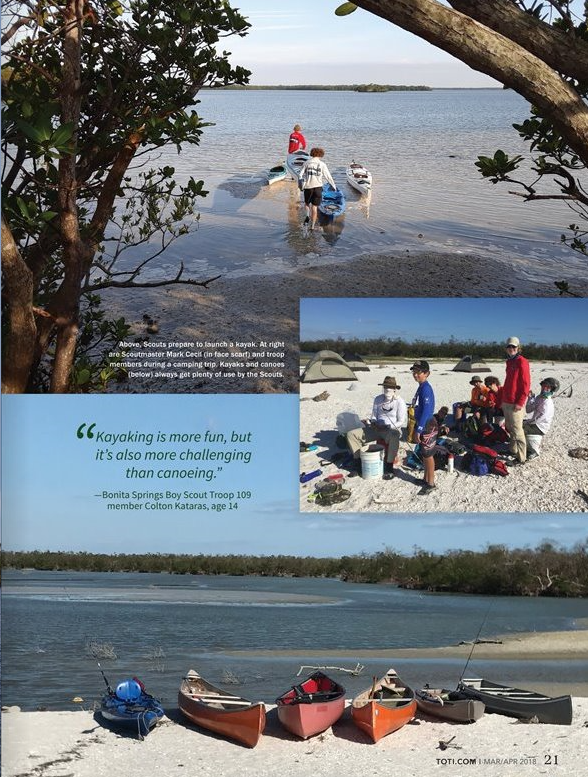 Troop 109 annually treks to Panther Key on a 14 mile kayak trip, camp overnight and return along the same 14 mile route.