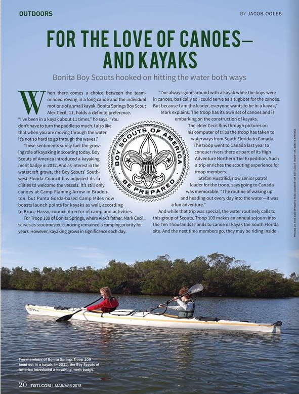 With a focus on the community, we help those around us, all the while making sure to experience outdoor adventure. Troop 109 was chartered over 30 years ago in Bonita Springs, Florida and has a strong connection to the local community.