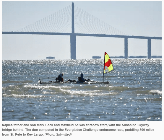This was the course that Mark Cecil of Naples, 59, and his son Maxfield Seixas, 18, set out on March 3. Cecil is a repeat racer, having paddled the course last year with another adult, but this was the first time for Max.