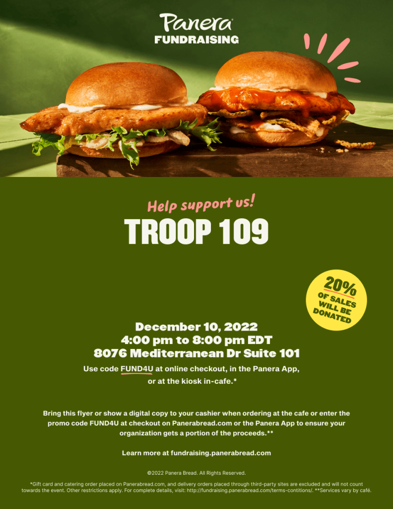 - December 10th, 2022 – Panera Bread Fundraiser