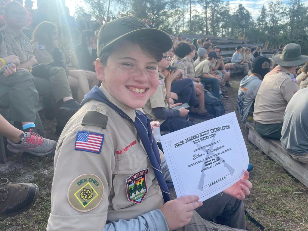 - December 26th-30th, 2022 – The scouts had a blast and earned Merit Badges at Winter Camp. The scouts even participated in a polar plunge cannon ball contest! How cold was that water?