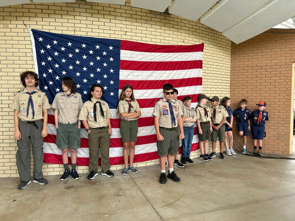 - May 29th, 2023 – Scouts lead the flag ceremony for the Downtown Bonita Springs Memorial Day Celebration.