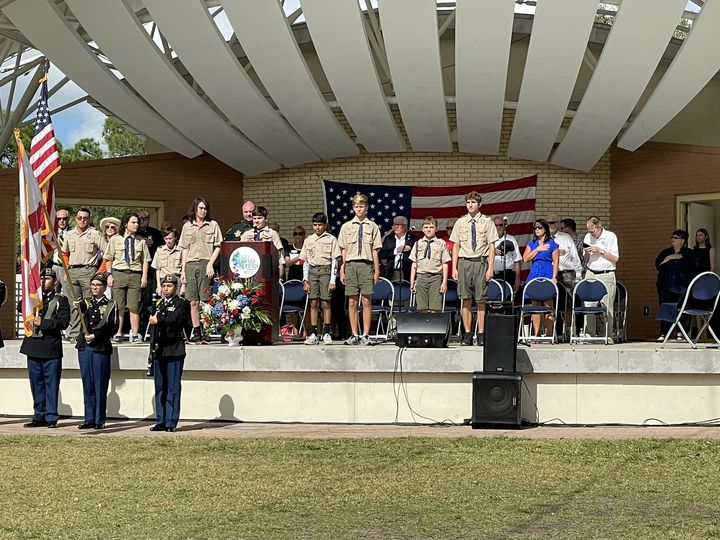 - November 11, 2023 – The scouts did great leading the Pledge of Allegiance for Bonita at the Veterans Day Ceremony.