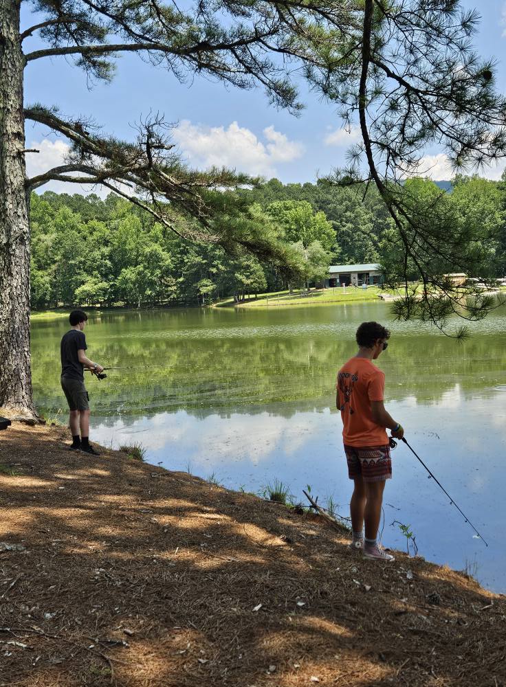 - June 22-28, 2025 – Summer camp this year? Hot. Like, “unprecedented heat wave” hot. But amazing staff and accommodations kept spirits high. Well, except for the missing an entire wall on one side of the Adirondacks. No worries, though, scouts are resourceful, and Tony whipped up some tarp walls like a pro. Problem solved. Ando was on staff, teaching fishing and wildlife skills and keeping Troop 109 in line. Half the crew went zip lining, while the other half decided crawling through a pitch-black, muddy cave sounded like a good idea. Spoiler alert: they should’ve brought a change of clothes. On the way home, the scouts hit up the coolest pizza-and-arcade joint in North Florida, because what’s an adventure without a victory slice and a few rounds of electric guitar?
