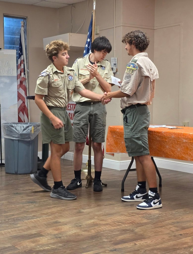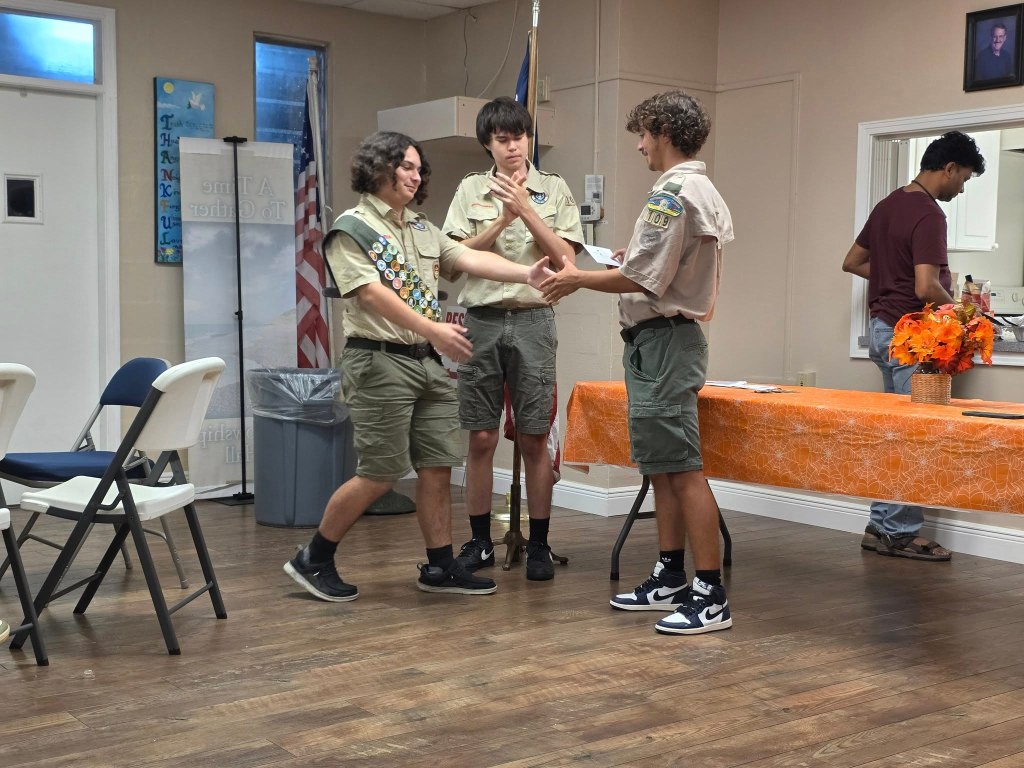 - October 6, 2025 – We had a fantastic time at our Court of Honor and Welcome Back Party! Several Scouts were recognized for their hard work and dedication, earning new ranks and awards. Congratulations to all on your accomplishments! Everyone enjoyed a delicious taco bar while catching up and celebrating together. We also held troop elections, and we’re excited to announce that Jack was elected as our new Senior Patrol Leader!
