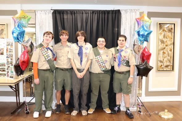 - February 8, 2026 – we celebrated an incredible Eagle Court of Honor, recognizing five outstanding Scouts for earning the rank of Eagle! It was a truly special ceremony, made possible by the dedication of parents and leaders who worked hard to create such a meaningful event. Congratulations to Brent, Xavier, Ennis, Nicholas, and Dax on this remarkable achievement!