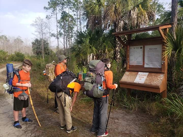 Scouts at Troop 109 regularly plan hikes to trek into the Florida back country. Packing in their food, water and necessary survival gear.