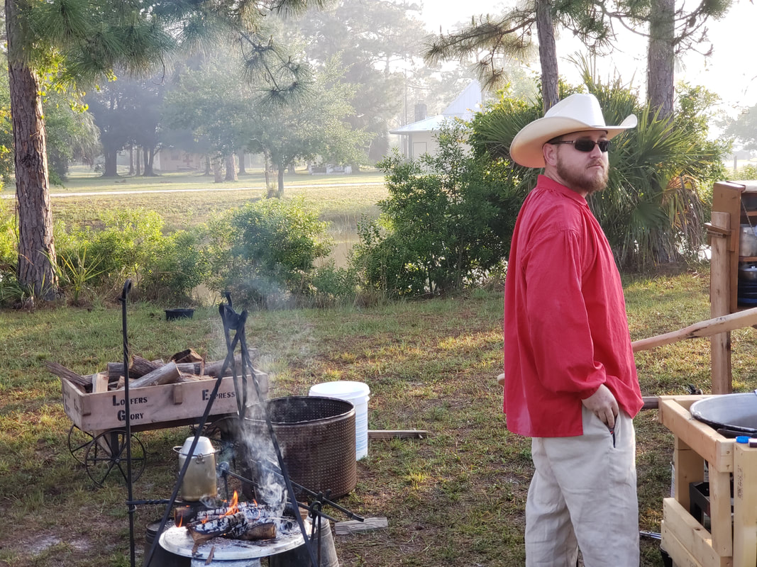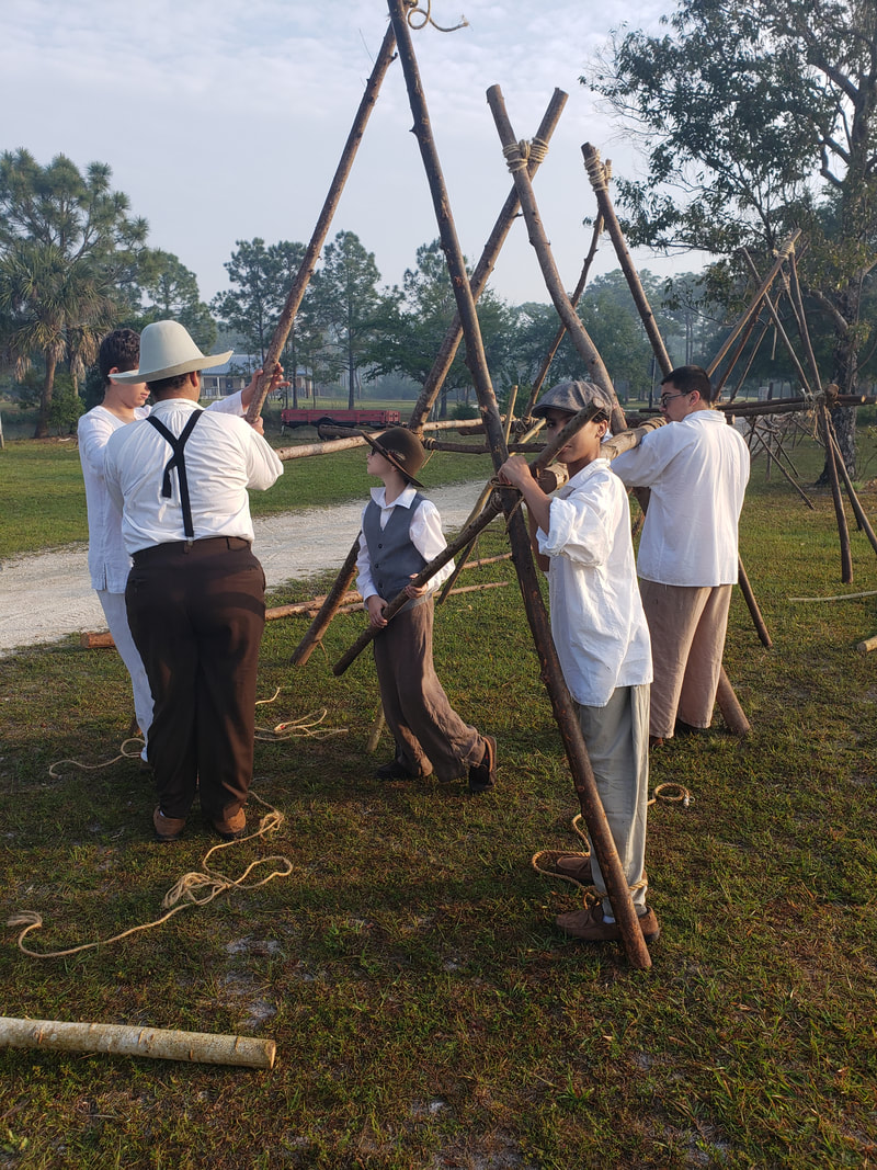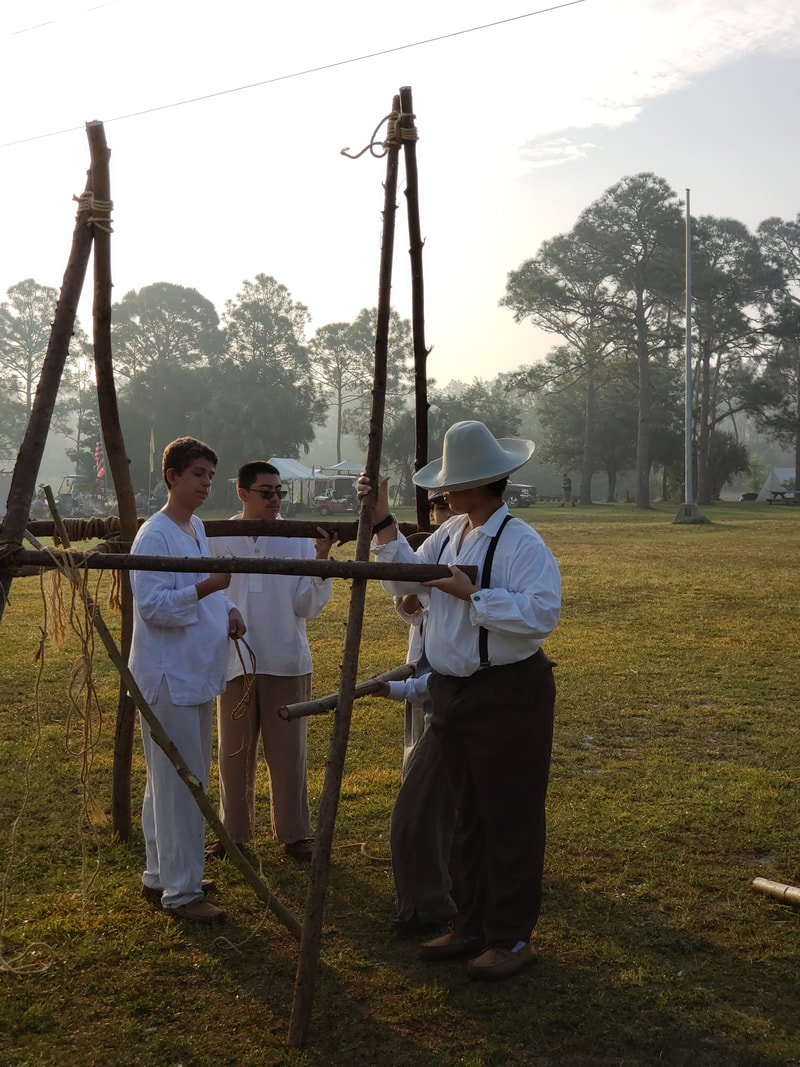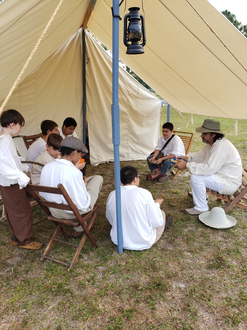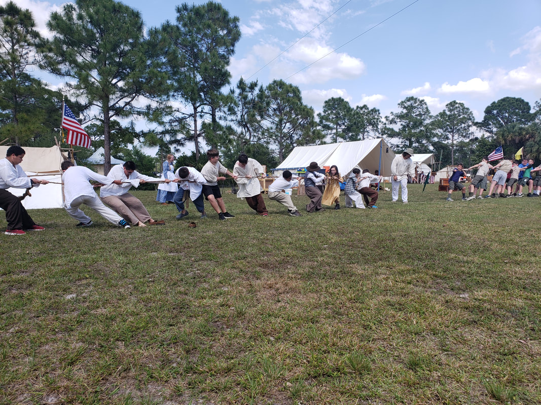 Annually, the members of the Florida Frontiersmen host the Alafia River Rendezvous – the largest pre-1830 living history encampment in the Southeast. Over 1,000 adults and youth establish a pre-1830 camp site on the Florida Frontiersmen club property. Troop 109 participates by dressing the part and setting up our canvas tents to live like a Pioneer.